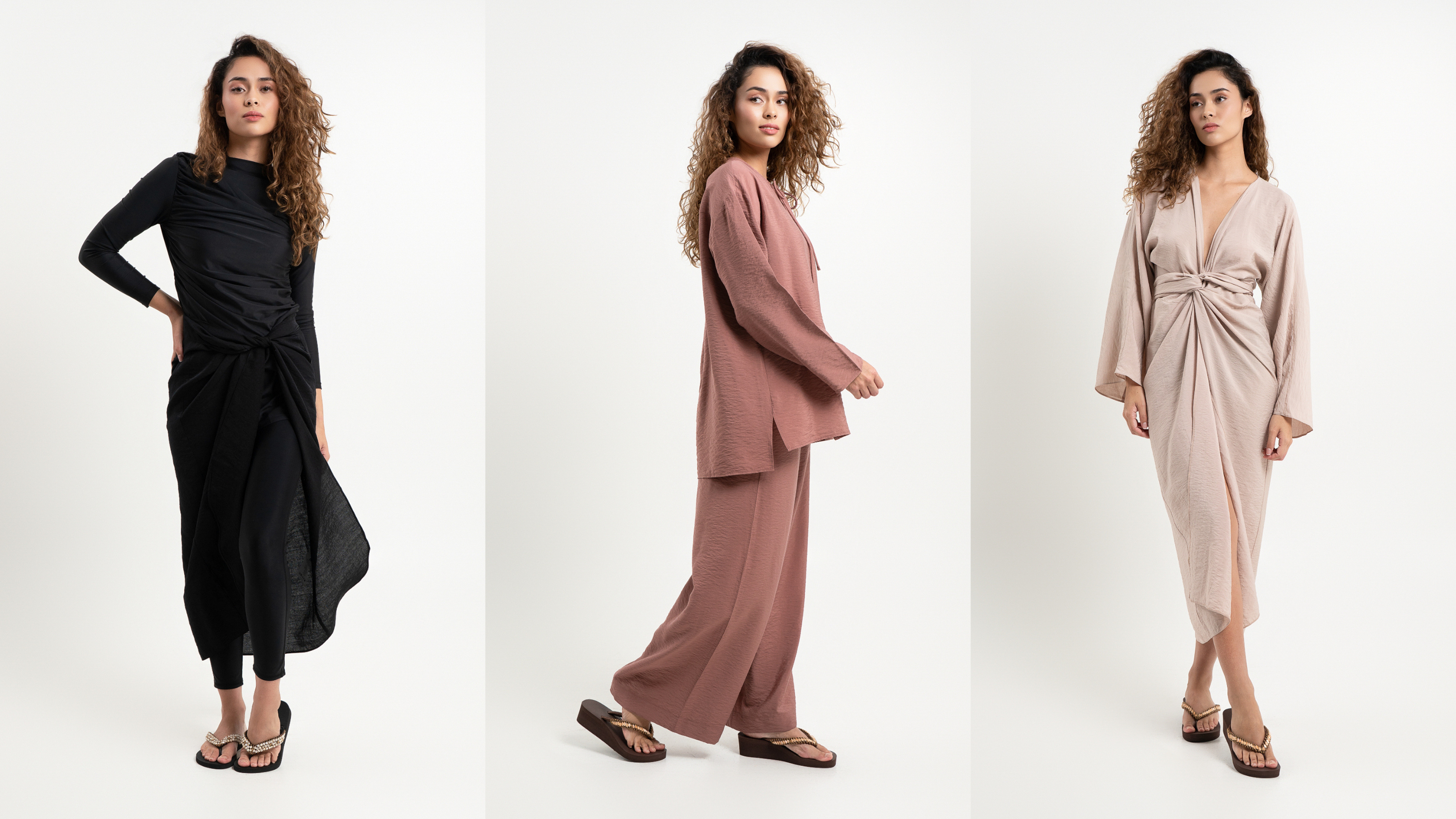 From airy kaftans and co-ord-inspired modest separates to handwoven abaca bags, luminous shell clutches, and artisan-embellished sandals, the collection reflects modern elegance that transcends the season.